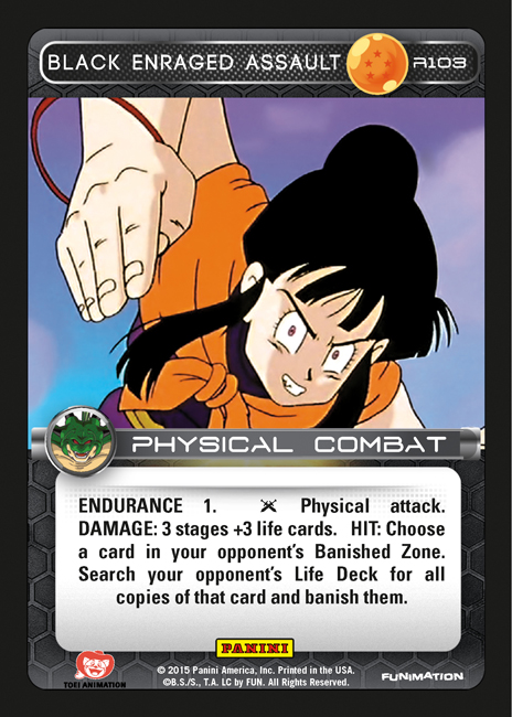 Consider pairing it with cards like Black Side Thrust and Black Disorienting Blow for a good mix of damage and utility. Tactically, utilize your Mastery or other banish effects to ensure that Black Enraged Assault can snipe a key card early on in the game. Finally, give thought to MPs that enhance your aggro-control strategy such as Nappa, Captain Ginyu, or Nail.
