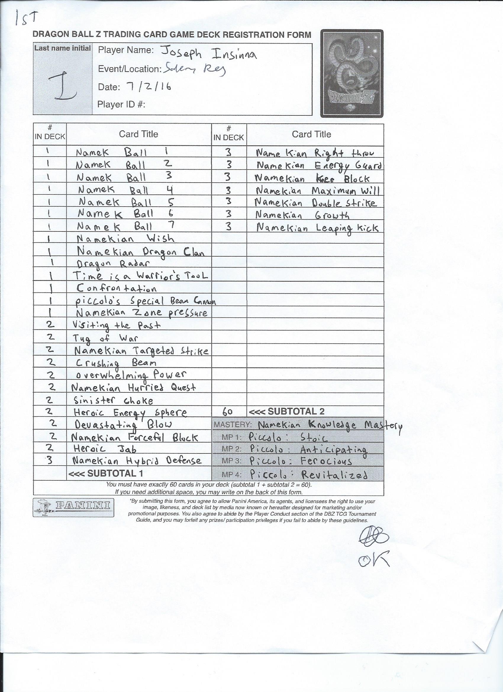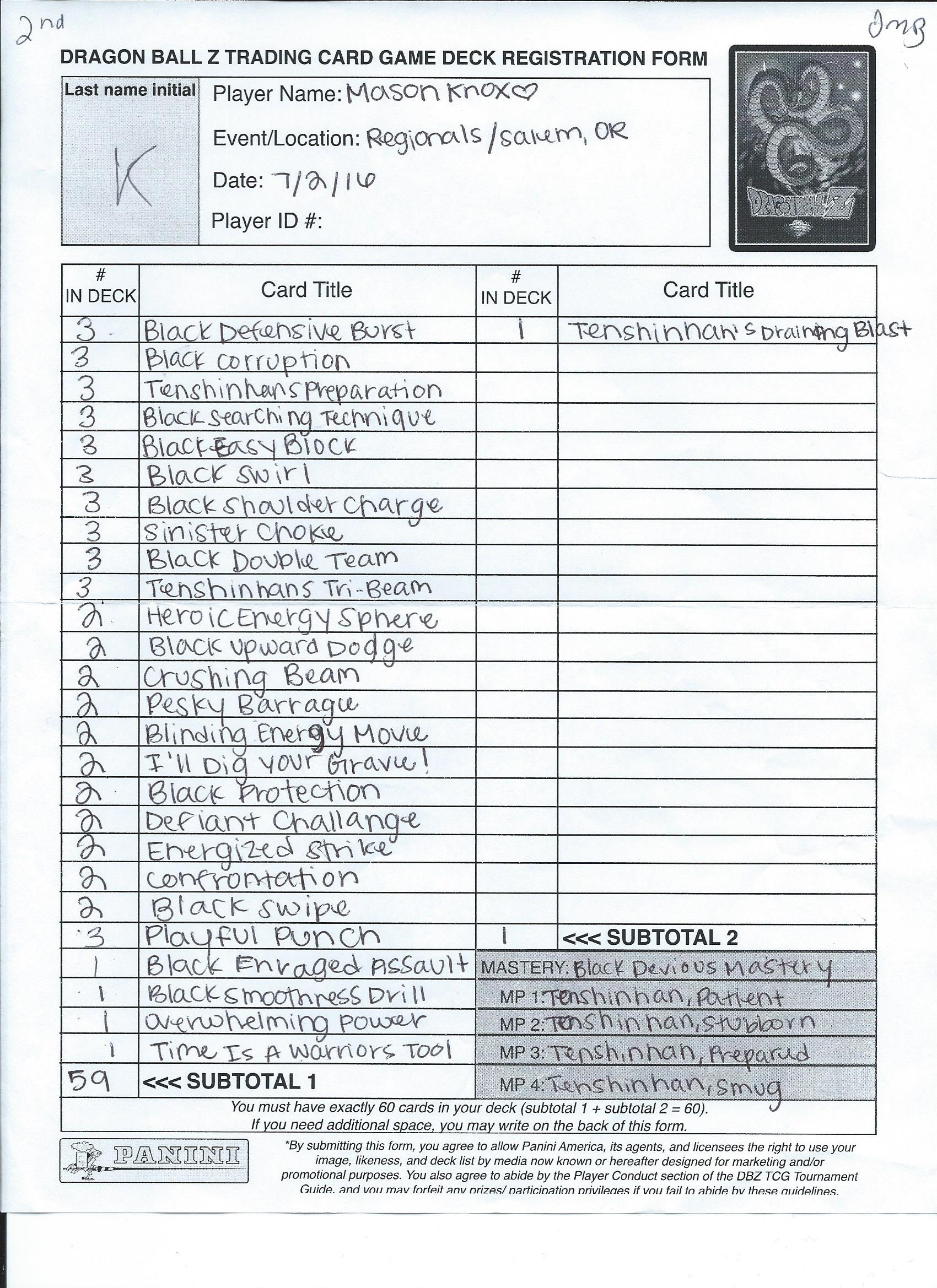 For the second year in a row, a Tenshinhan player earned a Worlds invite in Oregon! However, the run came to an end in the finals as Black Devious Tenshinhan (Mason Knox) was defeated by Namekian Knowledge Piccolo (Joseph Insinna). The top 4 decks: