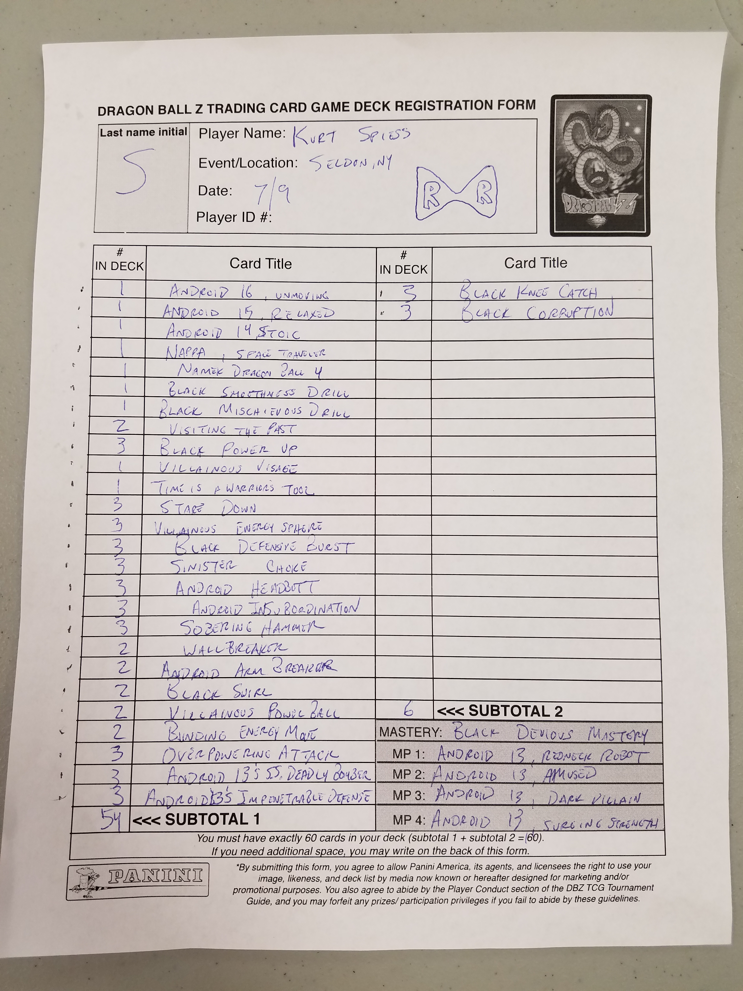 For the first time ever, two DBZ Regionals took place on the same day – and they were ushered in by Vengeance MPs! Both fields featured a healthy amount of Style diversity, including high representation for Saiyan (NY) and Red (TX). In our east coast event, 134 players attended the tournament at The Brothers Grim Games in Selden, NY. Of the new Vengeance MPs, Android 13 made the strongest showing – taking five of the Top 16 slots! While several builds of 13 proved to be strong, the day belonged to Black Devious 13 and the identical lists piloted by finalist Jermol Jupiter and champion Kurt Spiess. The top 4 deck lists: