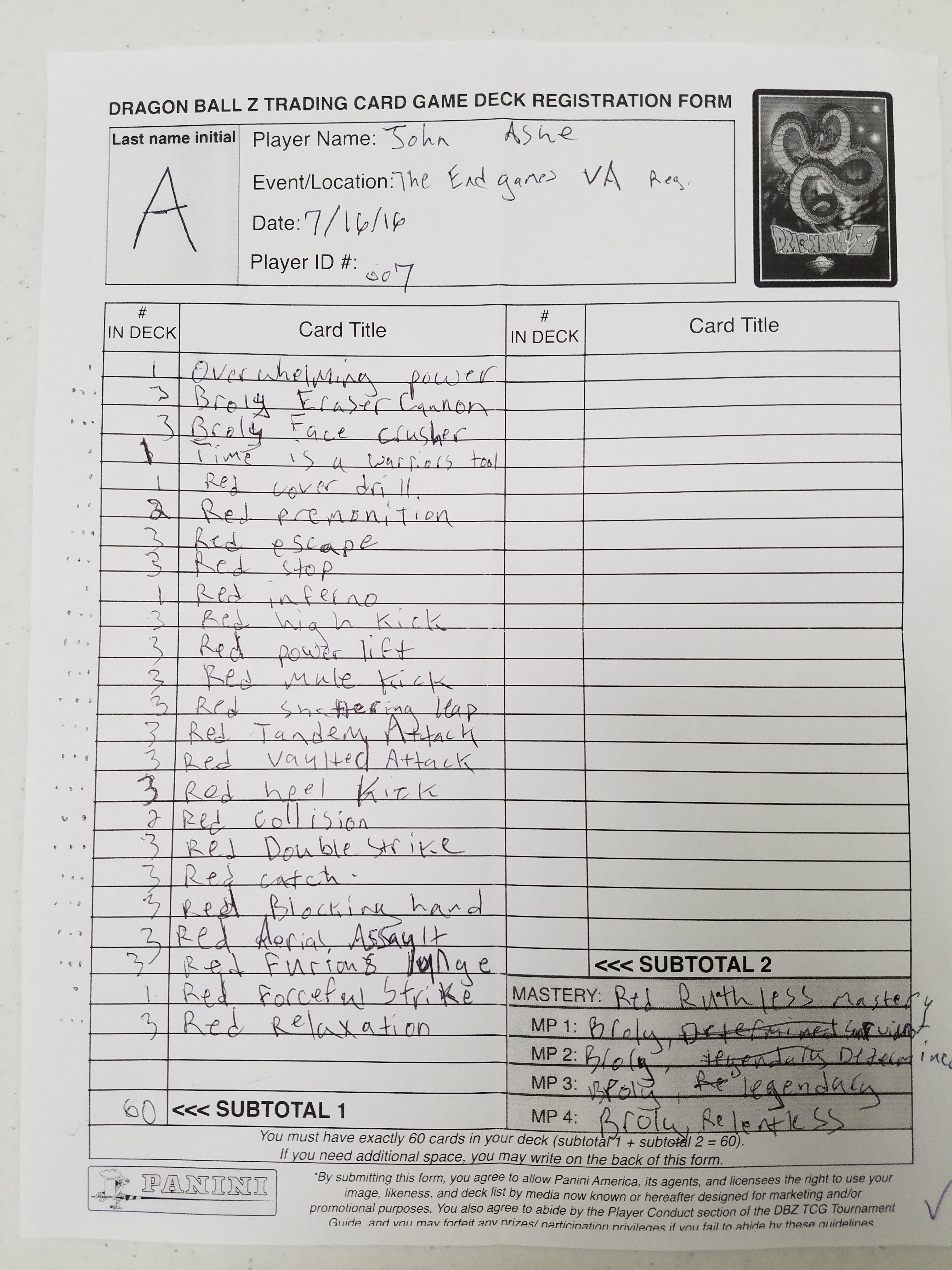 The final Regional before Gen Con unfolded last weekend at The End Games in Charlottesville, VA – and 115 players were in attendance! In the wake of Vengeance’s release, the metagame continues to coalesce around the offensive presence of Broly and Android 13. The Top 16 at Virginia reflected this, with Android 13 taking five spots and Broly nabbing four. In the end, it was fitting that Broly would not be denied a first Regional win – as Tim Sweeney (Black Devious Broly) took down Pat Eshghy (Namekian Knowledge Piccolo) in the championship round! The top 4 decks: