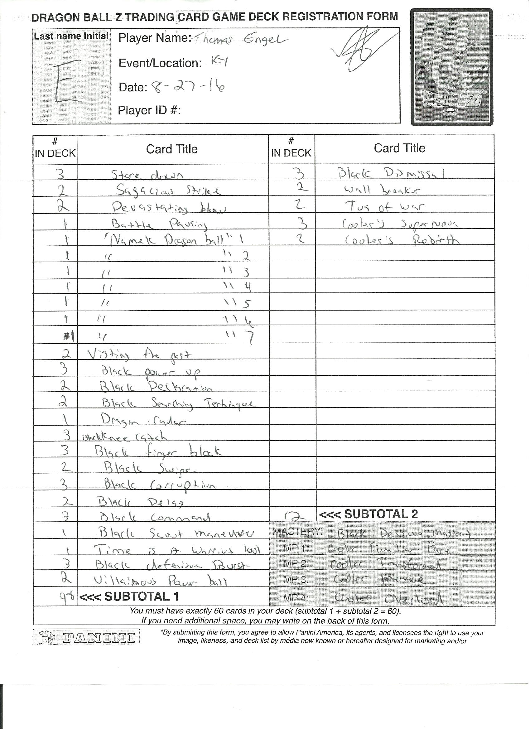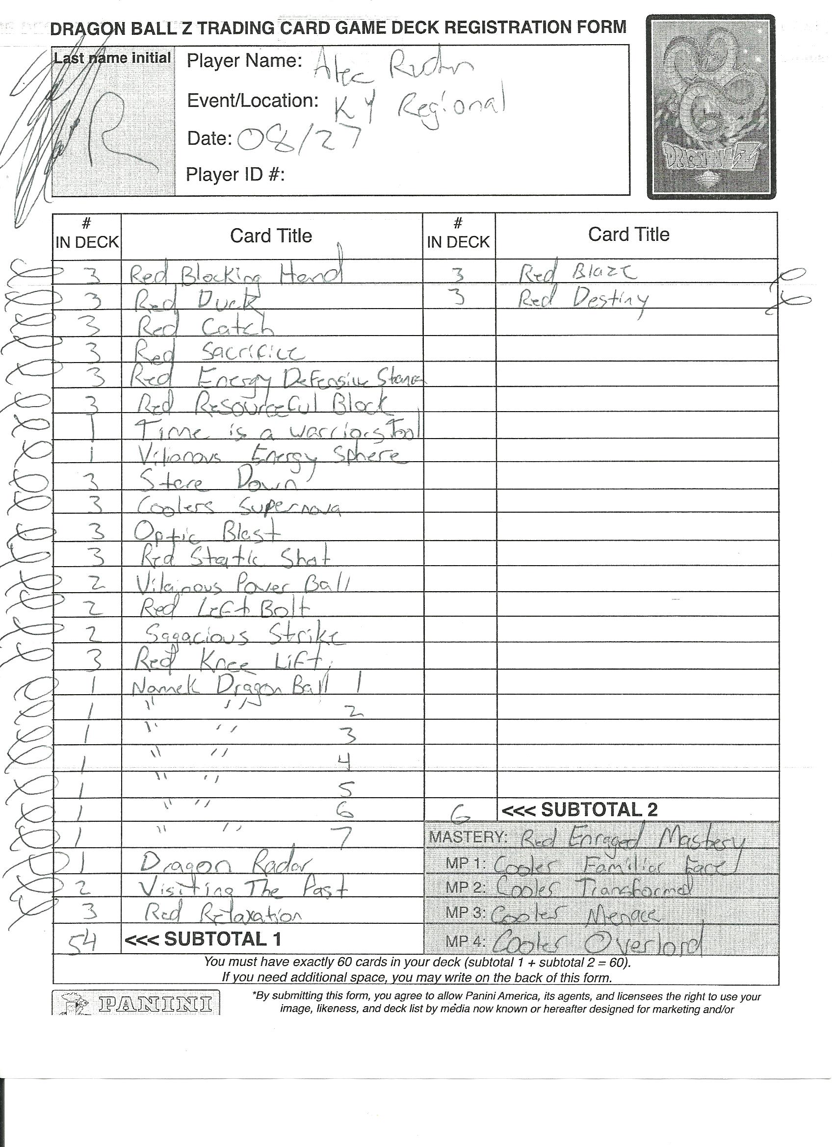 The field continued to display the high level of diversity seen in the ongoing Vengeance metagame, with a slant towards Red at the top. Though Saiyan Empowered Broly had won two straight events, only one appeared in the KY Top Cut. The elimination rounds featured the likes of Blue Tag Team Goku and Namekian Restored Gohan, but the finals came up Red.