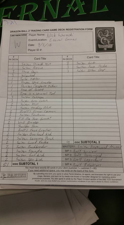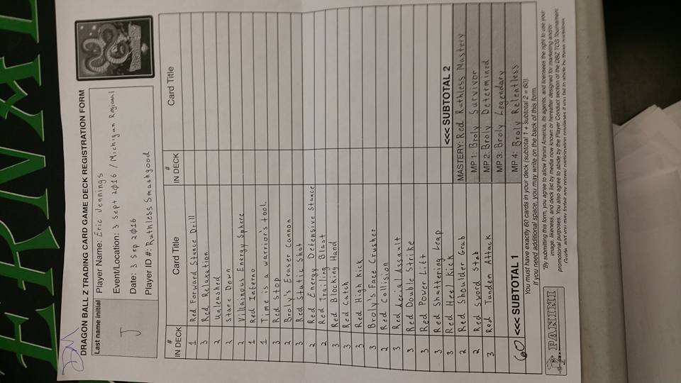 After a T4 featuring Namekian Restored Gohan, the finals came down to Orange Adaptive Yamcha (Brandon Suchan) against Red Ruthless Broly (Eric Jennings). In the end, Eric was able to secure the victory – giving Broly another Regional win (and the first time paired with Red)! Congratulations to Eric and Brandon for their qualification into Worlds, and a special shoutout to the prize support from Eternal Games!
