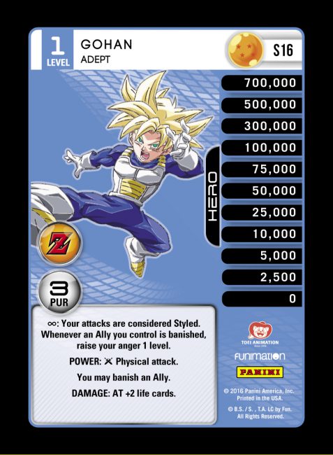In addition, this Level has a Constant ability that raises anger whenever one of your Allies is banished. As Ally decks are more likely to favor Gohan – To the Rescue Level 1, Gohan – Adept’s main strength comes from the AT +2 life card attack. Aside from dealing sizable damage, the immediate effect grants the option of banishing any Ally on the field.