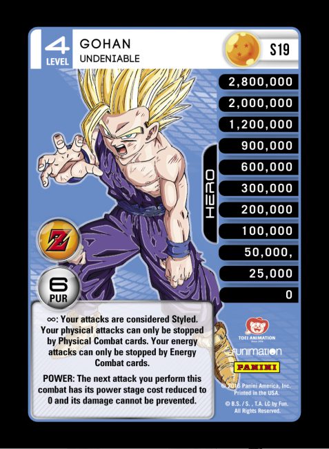 On each Level, all attacks you perform are considered Styled (note that this does not interact with attack cards while they are in a zone like your Life Deck or discard pile). This allows Gohan to create some unique interactions – as well as avoid certain forms of hate. When paired with Saiyan Dynamic Mastery, Gohan is able to gain anger from non-Styled attacks like Overpowering Attack and Sinister Choke.