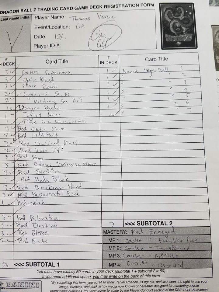 The T16 showcased an eclectic mix of decks, including early-Vengeance stalwarts like Ruthless Broly and Enraged Cooler (along with the continued success of Black Devious Cooler) fighting it out with new developments like Blue Tag Team Ginyu – or the recently revived Namekian Knowledge Piccolo! The final match saw Red Ruthless Broly (Justin Coggin) against Namekian Knowledge Piccolo (Cody Jakobitz), with Broly claiming another event victory!