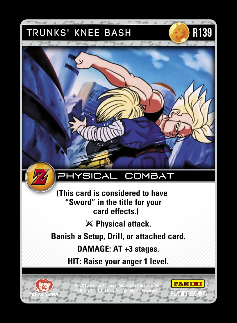 Trunks has made great strides since the release of Awakening, and his presence in the environment continues to increase. Trunks has a wide variety of Named cards, including the recently printed Trunks’ Knee Bash.