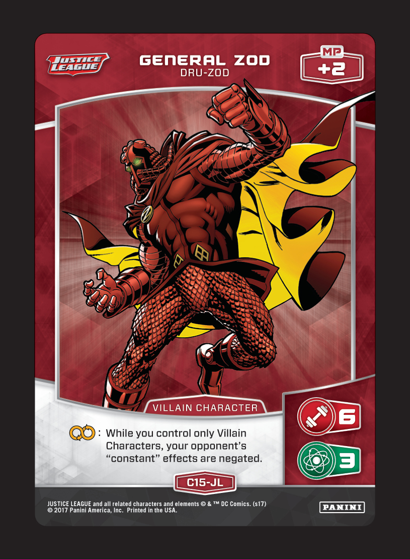 Short of KO’ing a Character outright, Zod brings one of the few effects in the game that answers a Continuous Effect (such as the above Darkseid). This lockdown effect is also one-sided, rather than symmetrical like John Constantine or Wonder Woman XR. However, taking advantage of this effect requires choosing from a more restricted pool of Characters.