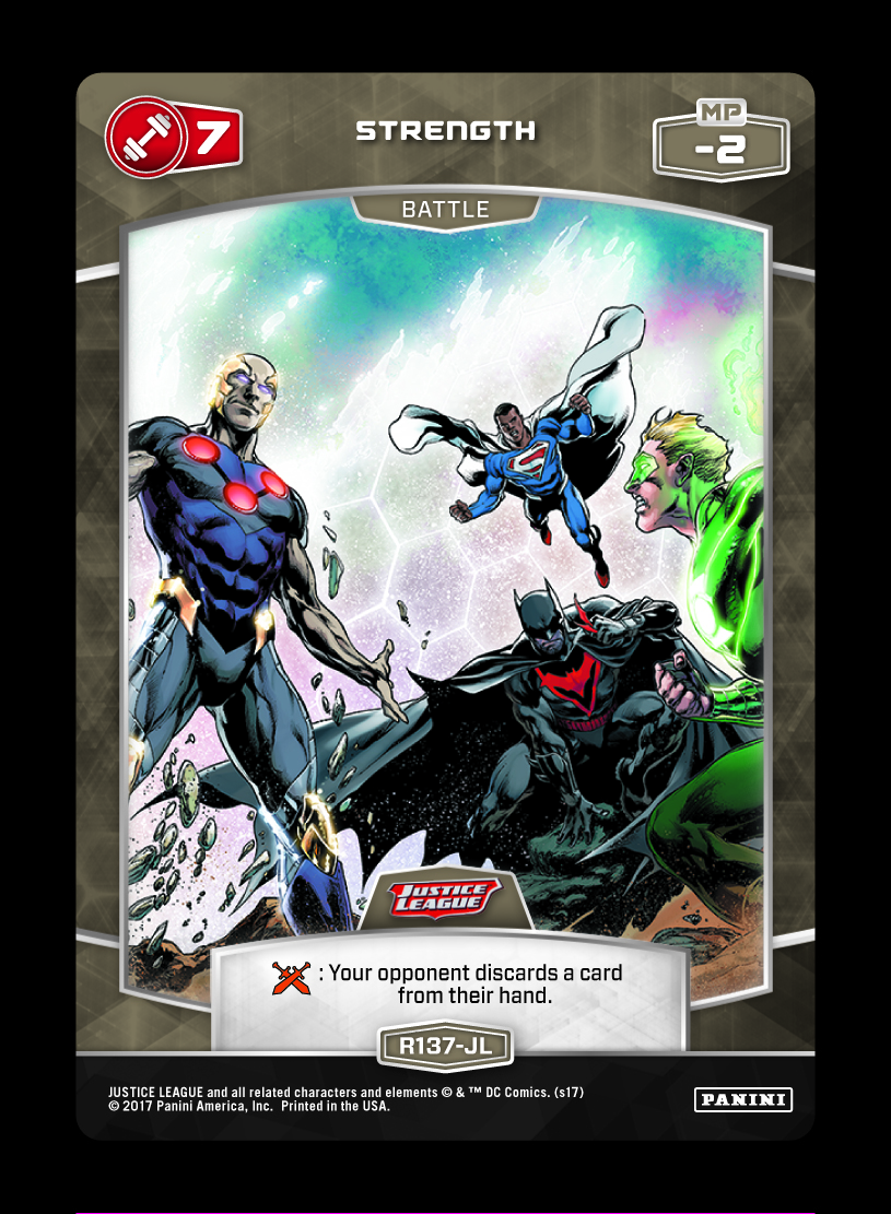Now, a look at the Rare Battle Cards with a rank of 7 from Justice League.