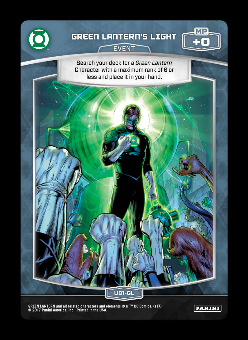 Green Lantern’s Light finds nearly any Green Lantern in your deck for a cost of 0 MP, ensuring that you hit your Character drops each turn – while also searching out the right one for the job.