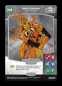 Larfleeze – Powered by Avarice is one of the more universal Orange Lantern effects, as he still gains +1 MP per turn in a deck with no other Orange Lantern Characters. In this role, he can operate as a slower (but more robust) version of Poison Ivy. In builds focused around the tribe, this effect provides consistent fuel for the higher costed Orange Lantern stamped Events.