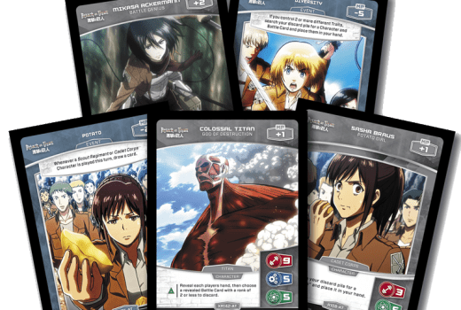 Spoiler season is officially underway! Earlier today, we unveiled the Ultra Rare “Mikasa Ackermann – Battle Genius” on the Panini Games Facebook page. We’ve previously explored some of the ideas and themes in Attack on Titan, and today’s cards provide a few concrete examples – and more hints at things to come. Whether you’re mixing and matching sets or simply using a mono-AoT build, you’ll want to stay informed on the latest spoilers (Tuesdays/Fridays on the blog leading up to the scheduled March 30th release). Even if you plan to only fight against Attack on Titan decks without utilizing these cards yourself, you’ll still want to follow along – know your enemy!