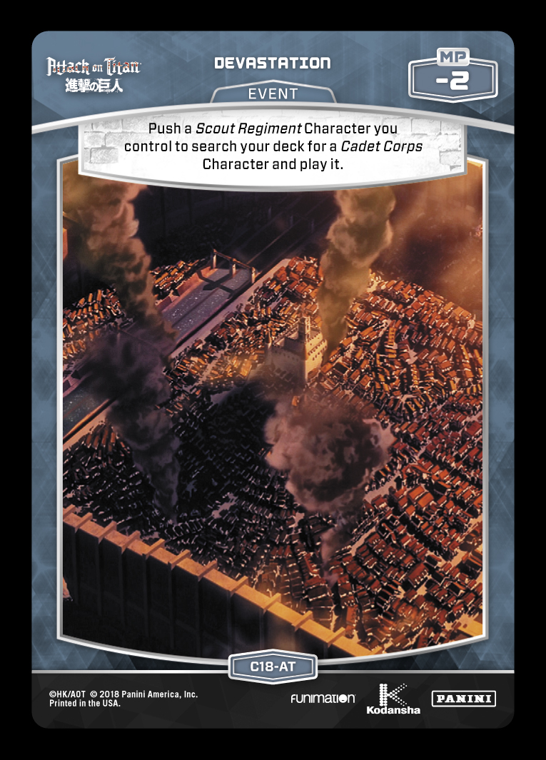 As a member of the Cadet Corps, Conny packs a tech effect that doesn’t always impact the game. At first glance, this may make him seem more useful as a splash in Scout Regiment builds with cards like Devastation. However, similar to fellow Cadet Mikasa, this effect can add strength to a number of archetypes with mixed Traits. His ability maintains board presence for decks that throw a constant stream of attacks, but he can also act as a shield for Push effect Characters with slower strategies (such as Brainiac).