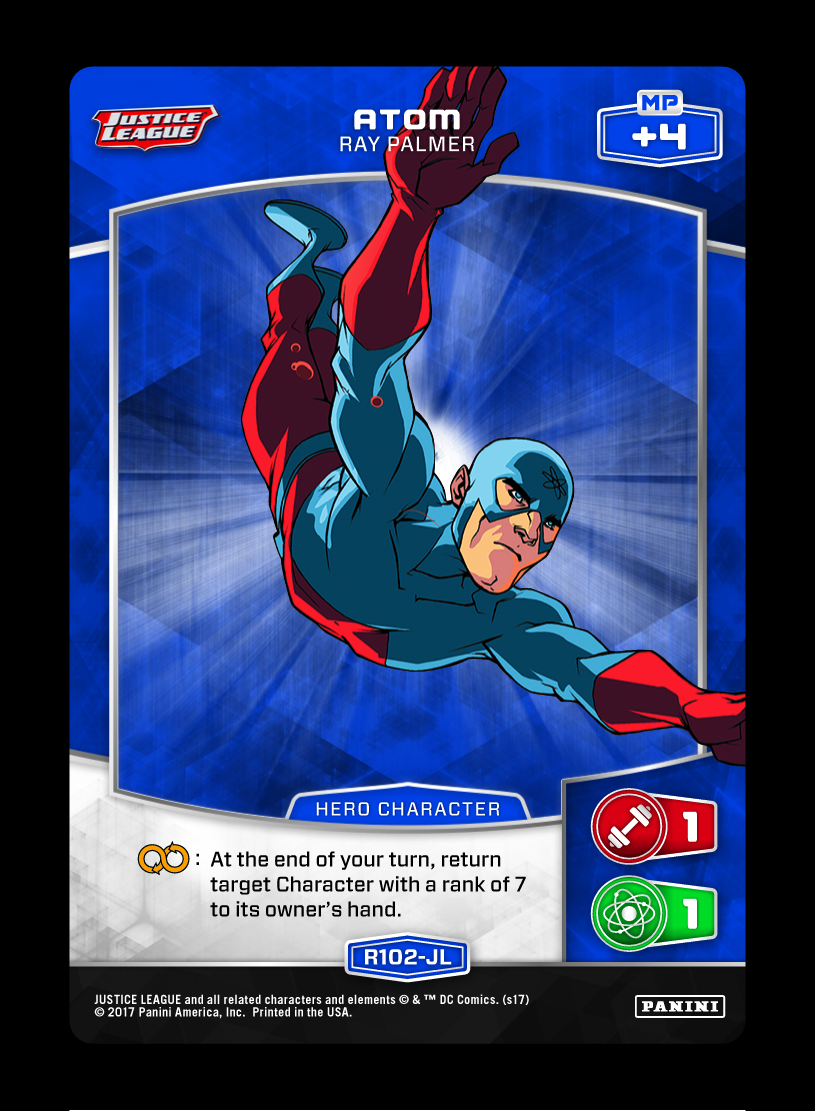 At first glance, Atom – Ray Palmer appears to be a counter to Rank 7 Characters (and unlikely to be included in a deck that has its own Rank 7s). However, Atom’s Constant ability can actually serve as an engine that returns your own Characters to your hand – which clears off any Damage and allows for a replay of +MP/“when played” effects! Today’s submission from Russ P. tackles this strategy with a plethora of Rank 7 Characters: