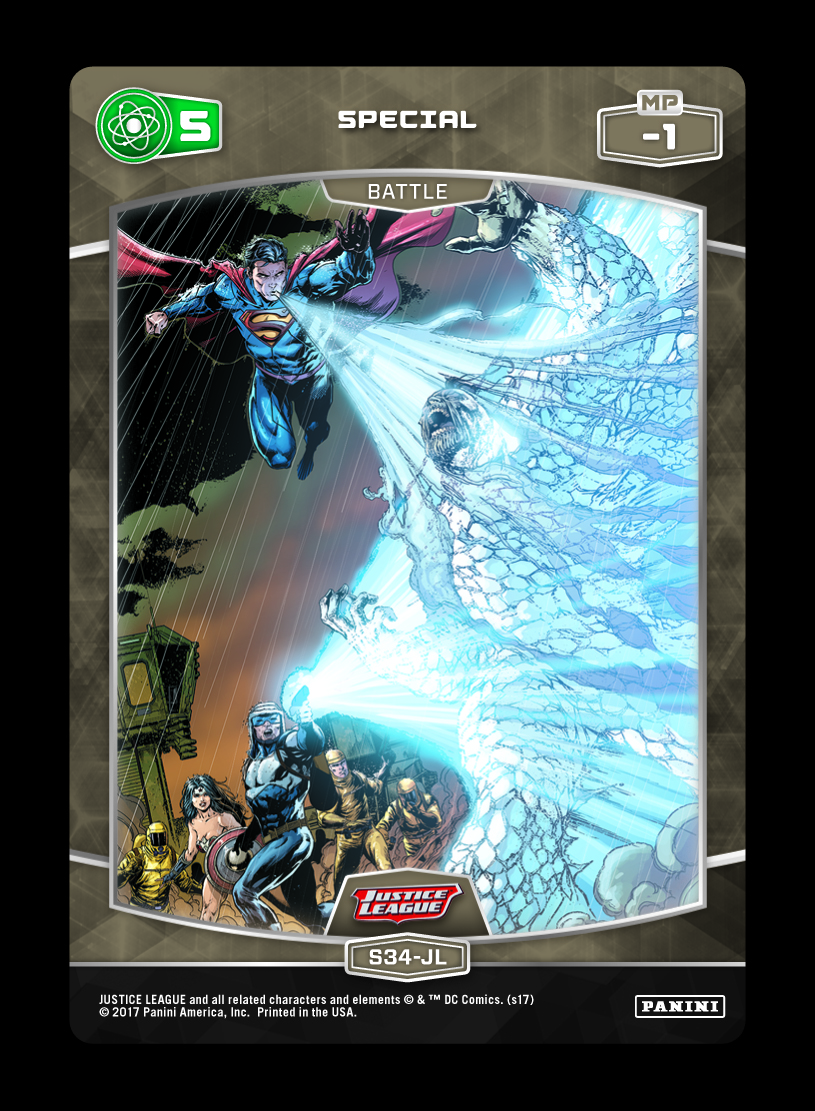 Kyle Rayner and a package of Basic Multi-Stat Battle Cards forms a strong backbone for any deck, but don’t be be afraid to run a complimentary suite of non-Basic Battle Cards as well. This lineup’s devotion to negation means that there is little overlap between Stats, but the Multi-Stat Battle Cards can smooth things over defensively. Between Frightened, Doomsday (and redundancy from Rise from the Ashes, Bizarro, and the other Constant effect Characters), this deck can plan on Battle Cards being negated for the majority of the game. In general, this means that the deck turns the Battle Step into a “numbers game” – making this deck function as something more Midrange (as opposed to tempo based “Stun” negation variants). Other cards to consider: