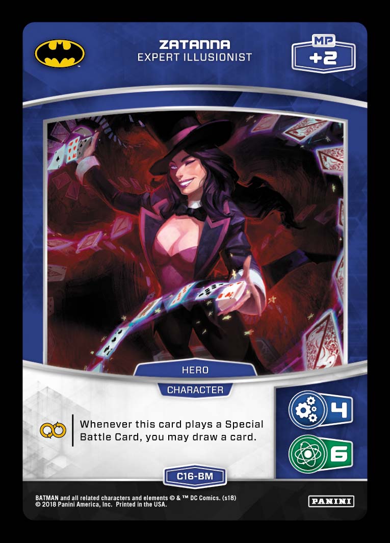 Zatanna – Expert Illusionist requires special attention to fit into a deck, but is still able to act as a draw engine alongside most Special-heavy Character lineups. On offense, look to pair her with effects that will allow you to enter the Battle Zone safely (such as Power Corrupts or Batman – Dark Knight) to ensure repeated usage. When defending, you’ll have more control over whether or not Zatanna will be KO’d – but also look to effects like 1 Special (C34-JL).