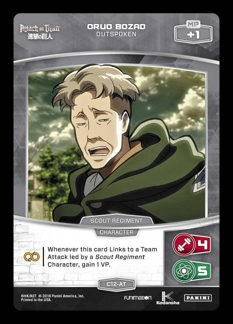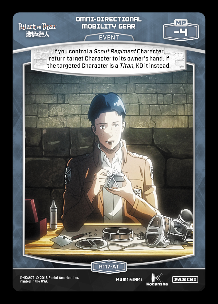 Blaine describes the feel of the deck as “scouts flying through the air” – spearheaded by the searching ability of Mikasa Ackermann – Lethal Force. He also identified the key role of Captain Levi (for his multiple boons), augmented by the flexibility of Battle Genius. Outside of the Character engine, Flanking was cited as essential for its ability to recover from mass-KO strategies. However, this means that the deck can still have trouble dealing with bounce effects – along with “discard decks” (especially GCPD).
