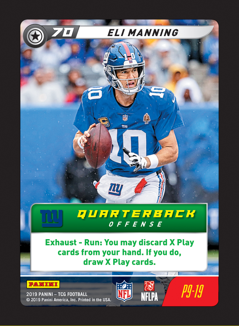 From 12 PM to 4 PM, attendees will be able to check out the latest offerings from Panini -including NFL Five! Panini representatives will be on site to teach the game with Demo Decks, and they’ll also be handing out free copies of P9-19 Eli Manning, P4-19 Josh Allen, and P5-19 Michael Gallup!