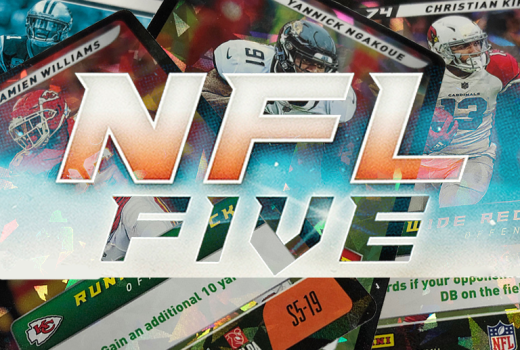 This NFL season has passed its halfway point, and the first season of NFL Five Tournament Kits are still going strong! You can find a roundup of the currently available promos here. Tournament Kits and Demo Decks are freely available to stores hosting events – contact OP@paniniamerica.net for more information. Also, stay tuned for details about new promo cards rotating soon!