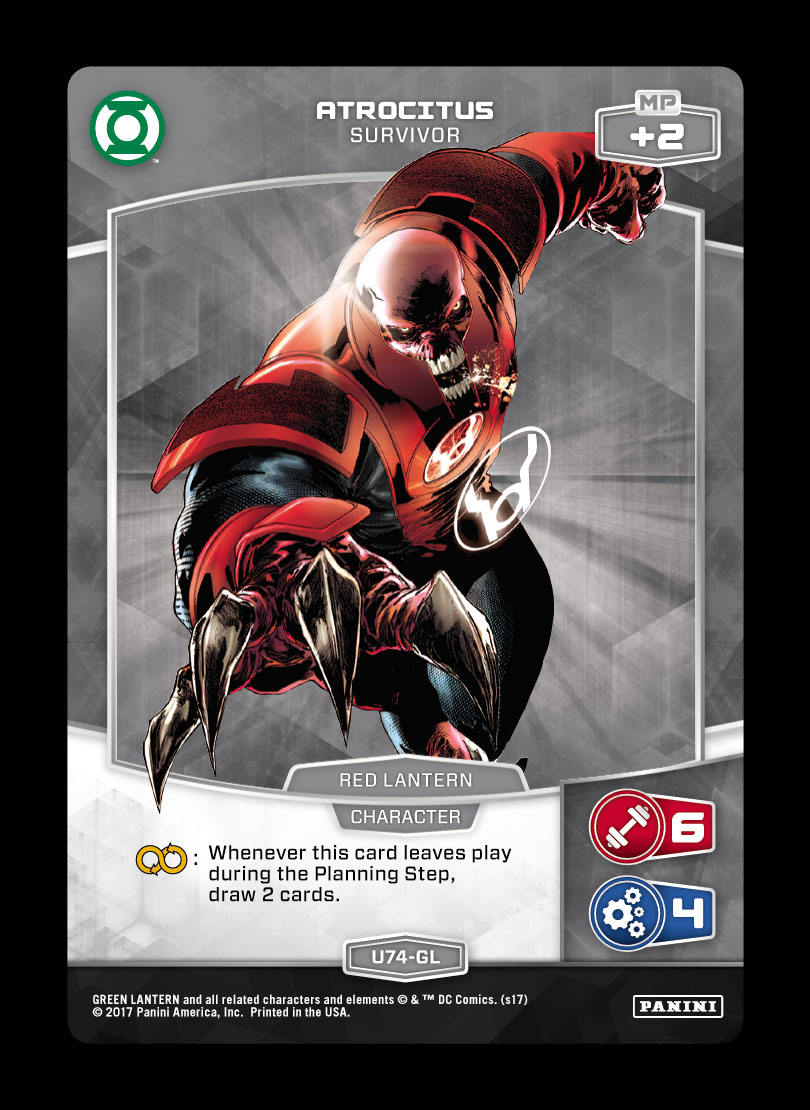 Keeping on theme with the Green Lantern expansion, Atrocitus – Survivor has an obvious home in Red Lanterns – creating card advantage with Bleez and Atrocitus – Atros. However, he also provides generic value in the form of beefy stats with an ability that punishes removal abilities (like Starfire). This effect is at its best when combined with self-KO effects that create space in the Character Zone on demand, such as Resurrection of Power, Camaraderie, and Green Arrow – Hand of Death.