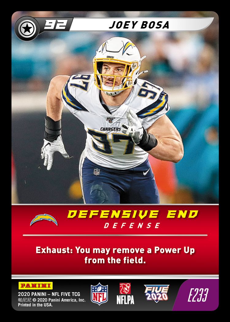 Several cards provide the ability to remove a Power Up from the field, but Joey Bosa can do it without tackling.