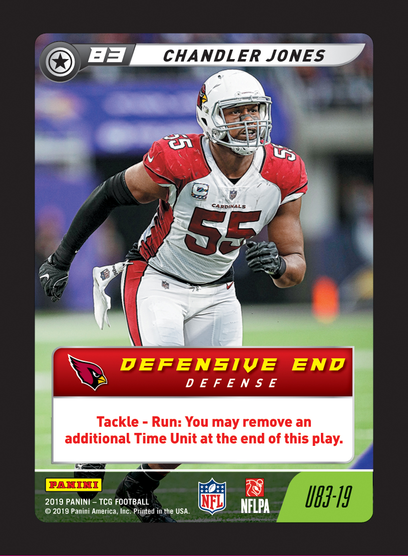 Joseph R.’s defensive lineup included two overlooked Players from the 2019 release, with C49-19 Marquel Lee and U83-19 Chandler Jones forming the background of a “Time Machine” build. In combination with Slow Roll from the new set (and effects that energize Lee and Jones), this approach allows for a great deal of control over the game clock. In the first streamed match of the season, we’ve already seen a unique strategy hit the field – it’s exciting to think of the expanding possibilities from here!