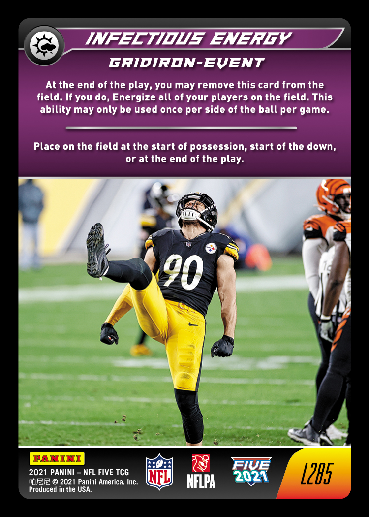 NFL Five 2021 releases August 18th. As we approach the official launch, keep watching the blog for more card images – along with a foil pattern preview, full checklist reveal, 2021 giveaway, and more!