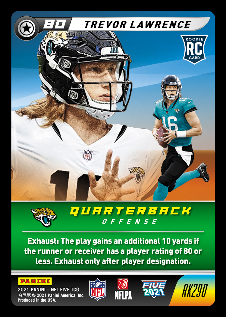 NFL Five 2021 releases August 18th. The new set will introduce a “swirl-o-rama” foil pattern – see here for a preview. Today’s gallery includes a selection of Rookie cards, as well as a new Superstar player: