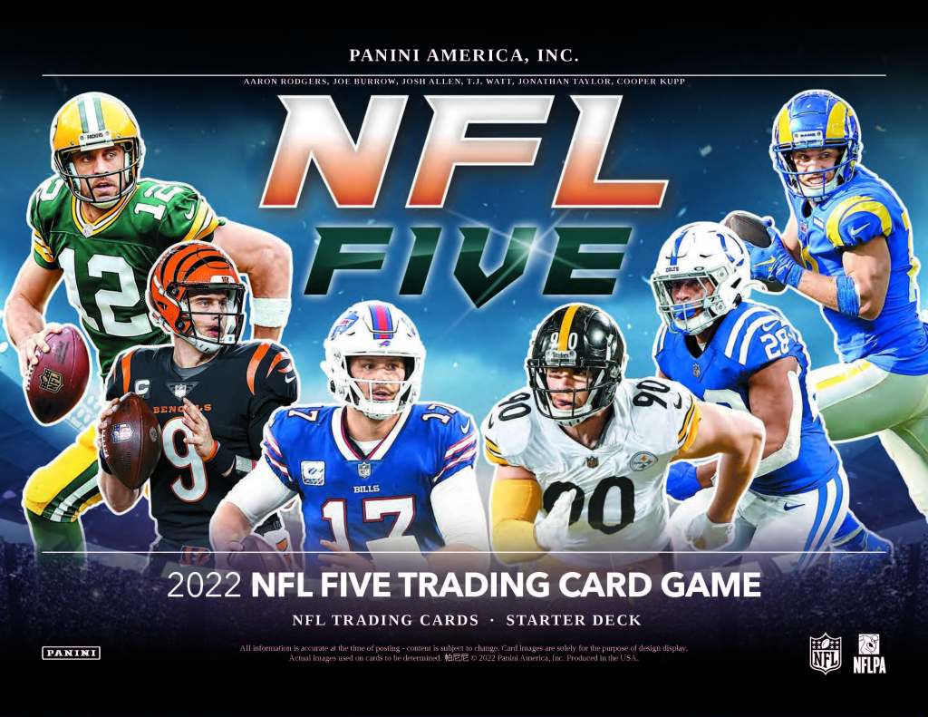 NFL Five 2022 is currently available at retail chains (such as Target) and local hobby stores. You can view the full checklist here, and watch for the new rulebook to be uploaded next week. NFL Five Free Play events take place online and offer webcam matches, Q&As, free promo cards, and more – see the Fall schedule here.
