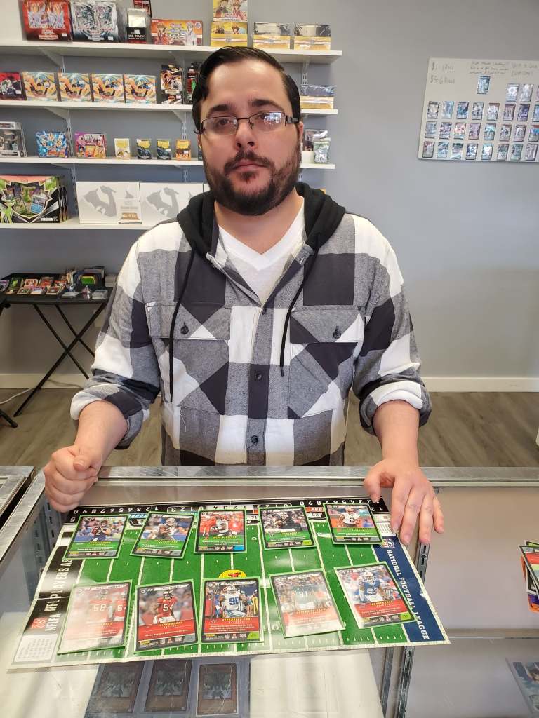 NFL Five Draft events can be run in a variety of ways, and you’ll usually need a Starter Deck and Booster Packs for each player. In today’s example (photos courtesy of Joey D. from Louisiana), Player Cards were separated from each participant’s sealed product, and the Players were then selected in a draft. From there, Action Decks and Play Decks can be completed with each entrant’s remaining card pool. You can also draft the Action Deck and/or Play Deck cards if desired. There can also be a separate round of picks for Synergy cards, and you can choose to implement “Rainbow Synergy” rules (allowing any Synergy card to be used with any lineup). Alternatively, you can create a fantasy budget and spend it on auctioning Player Cards – there are endless variations to becoming your own GM!