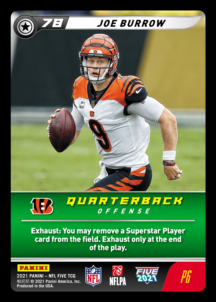 Tomorrow’s NFL Five Free Play event takes place from 3-5 CST on Zoom (invite here). Virtual attendees will receive four promo cards of their choice, and you’ll also have the option to play a webcam match against an online opponent. For January, P11 Za’Darius Smith and P6 Joe Burrow will be added to the pool of eligible selections: