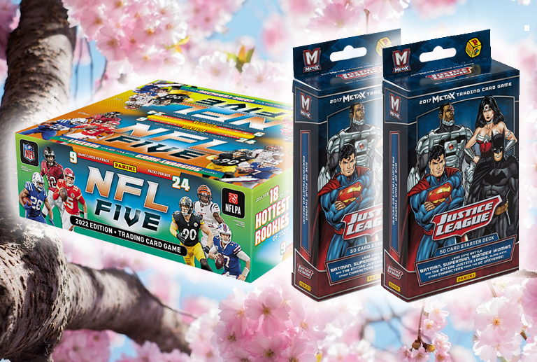 Next month will bring two new giveaways – starting with Justice League Starter Decks to kick off April! After that, you’ll have the opportunity to win a Booster Box of NFL Five (with a theme of “underrated cards”).
