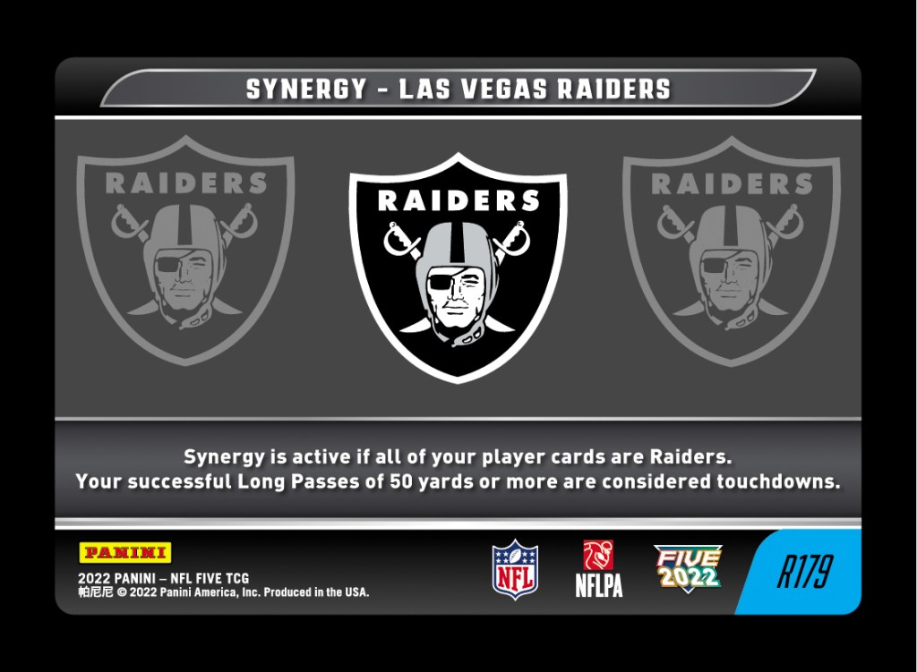 The Las Vegas Raiders Synergy card only impacts one side of the ball, but its clear direction informs the entire strategy of your offense – and often leads to exciting results! Aside from running a high count of Long Passes and modifiers like Sharpen Focus, there are also numerous Player Cards to support this approach (starting with Davante Adams). Since your opponent will likely guess Long Passes whenever possible, be sure to include a mix of other plays to trick the defense!