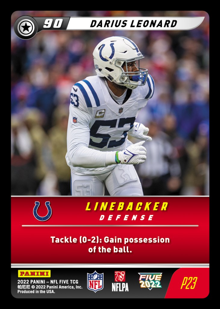 August’s NFL Five Free Play event takes place this weekend on Saturday the 19th from 3-5 CST. This event will provide the opportunity to play a webcam match, or you can simply stop by to chat. All virtual attendees will receive four promo cards of their choice, with P9 Travis Kelce and P23 Darius Leonard joining the pool for August!