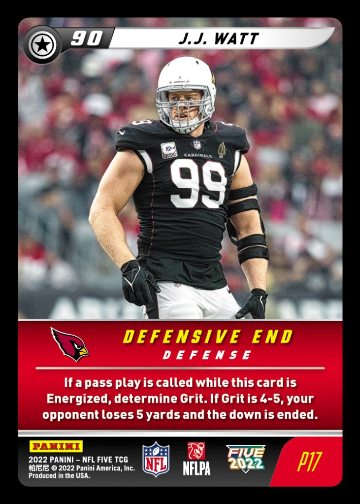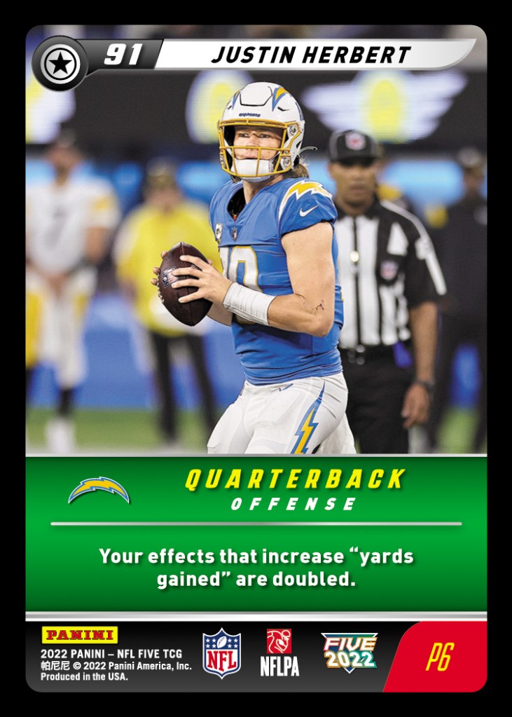 This month’s NFL Five Free Play event takes place on Saturday, November 11th from 3-5 CST. All virtual attendees will receive four promo cards of their choice – with P6 Justin Herbert and P17 J.J. Watt joining the pool of eligible selections for November!