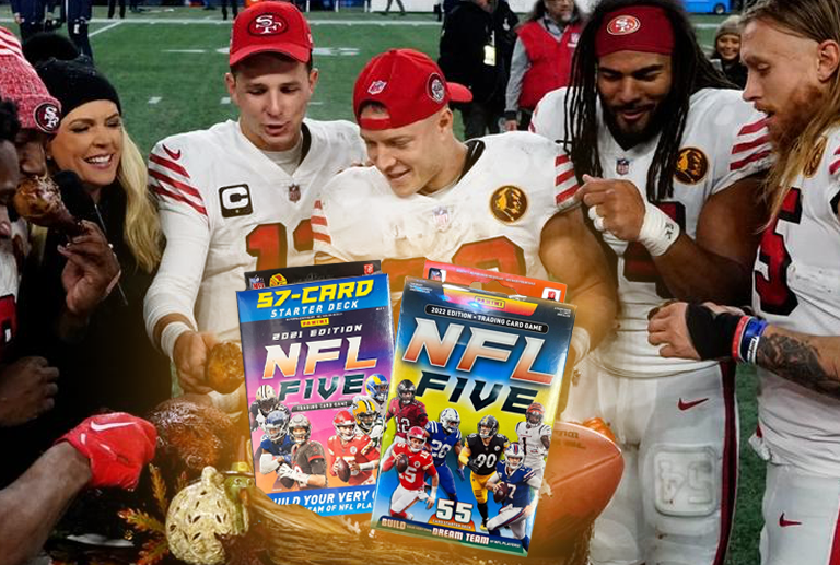 Our NFL Five Thanksgivingaway event kicks off this Friday – where three randomly selected winners will receive Starter Decks from the 2021 and 2022 sets! Check back on November 22nd for the participation prompt, then visit the Panini Games Facebook page to enter.